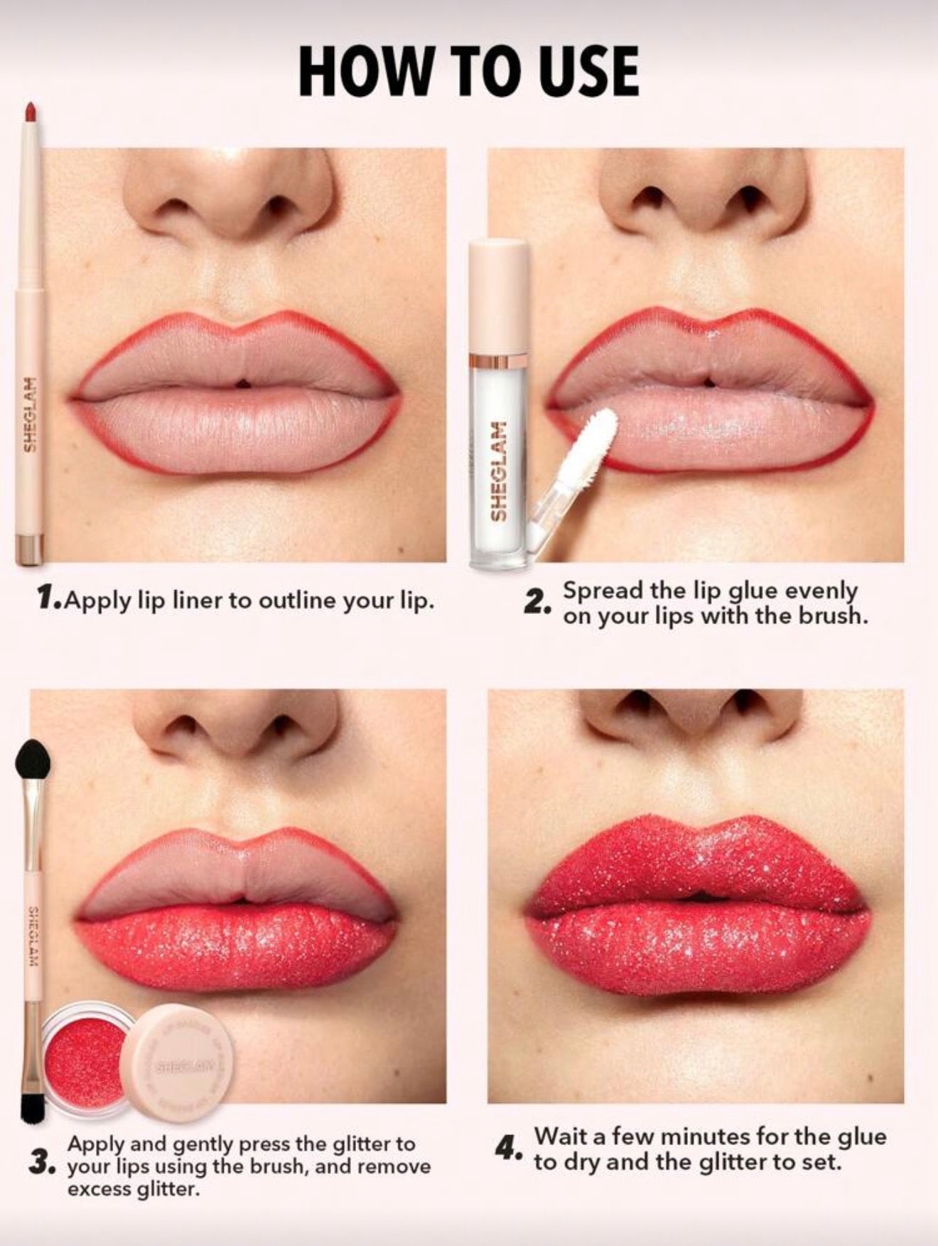 Including a lip adhesive, brush, glitter, and liner, our kit makes it ultra-fast and simple to get a red carpet-worthy look.