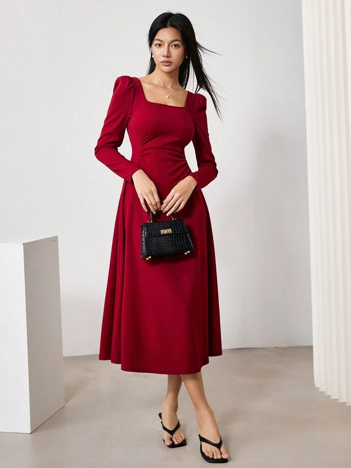 Solid Retro Ruched Waist Dress