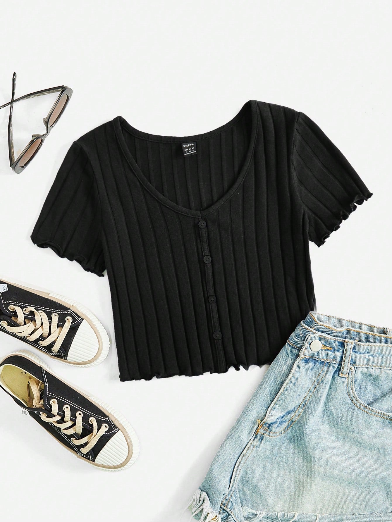 Details: Lettuce Trim, Rib-Knit, Button Front