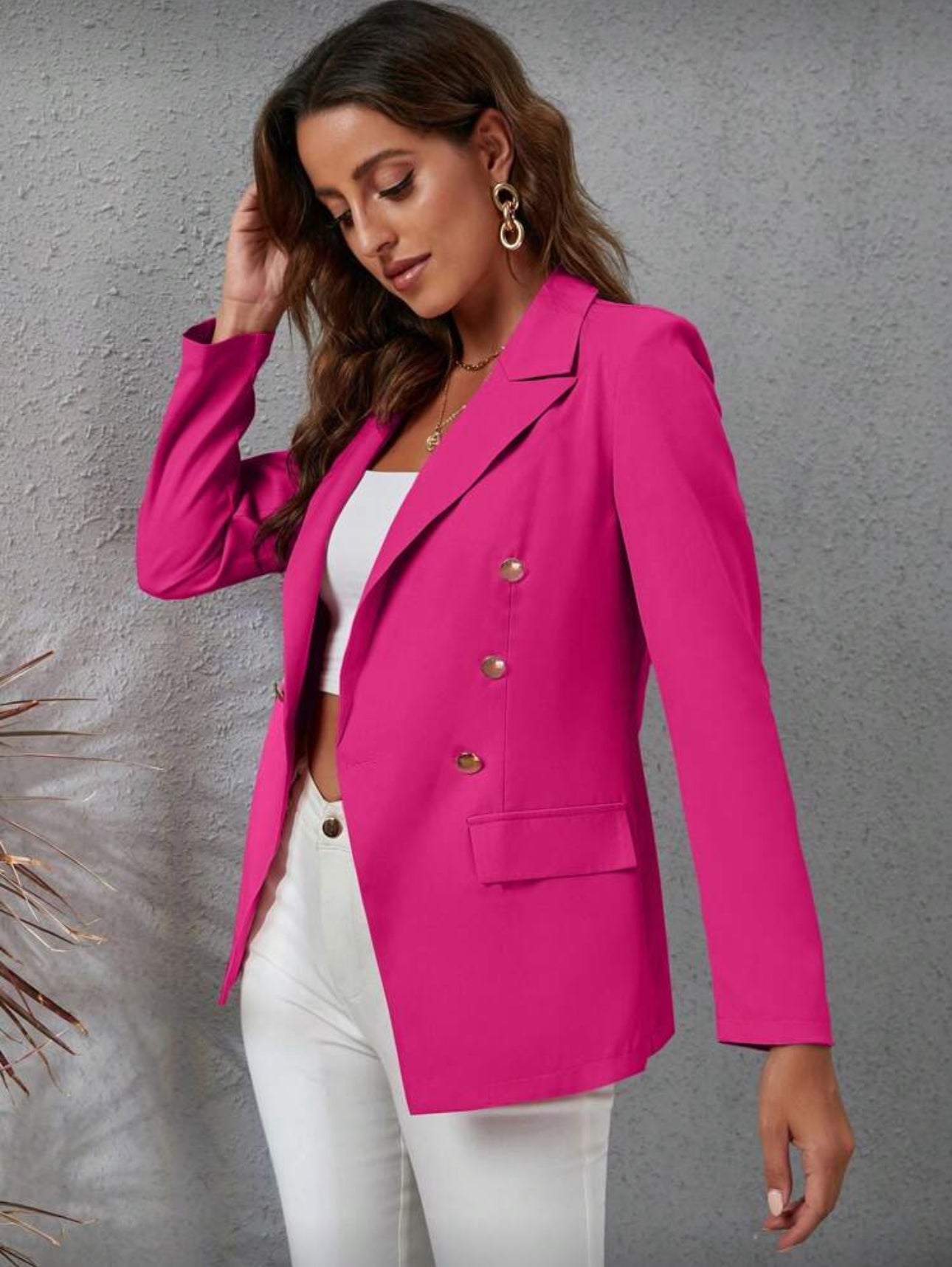 SHEIN Lapel Collar Double Breasted Flap Detail Blazer